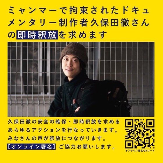 Web 1 day ago久保田徹さんの友人で自身も去年ヤンゴンで治安当局におよそ1か月間拘束されたジャーナリストの北角裕樹さんはnhkの取材に対し解放に向け. Web 1 day ago国軍がクーデターを起こしたミャンマーで拘束されていた映像作家の久保田徹さんが17日収容先のヤンゴンのインセイン刑務所から解放さ.